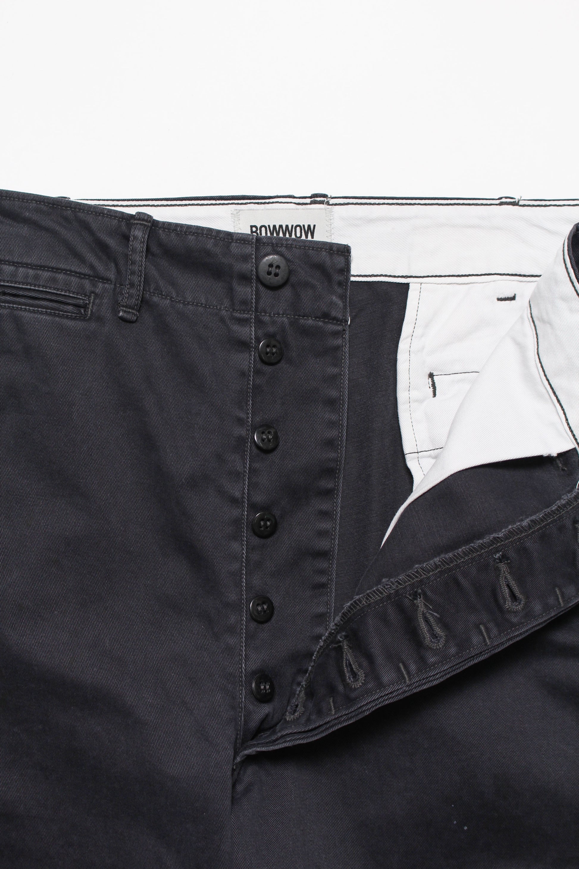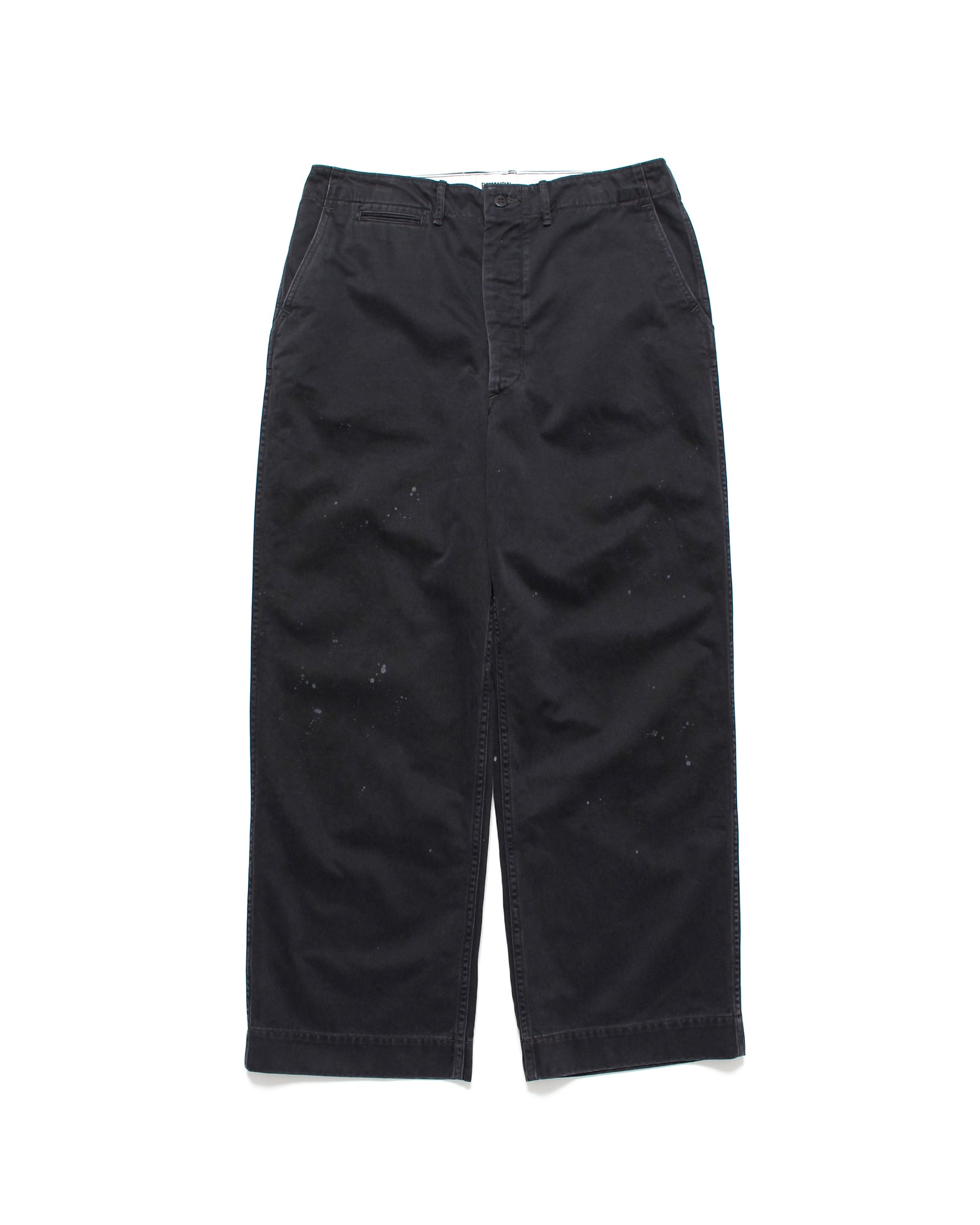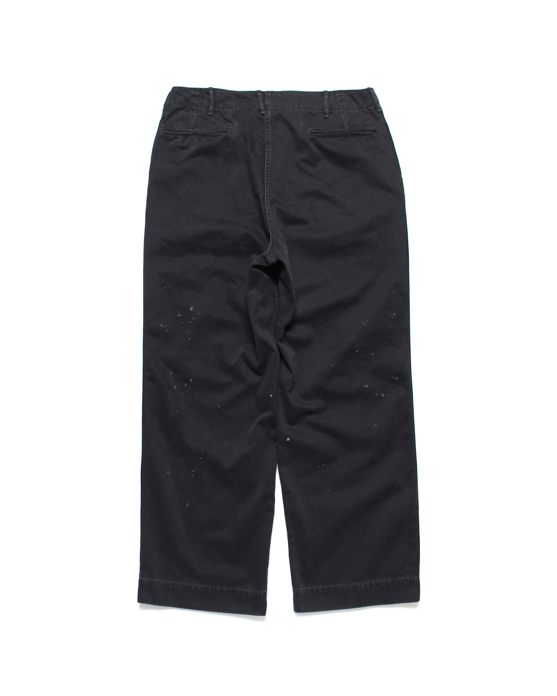 40年代オールドディティール搭載のワークパンツは、ブランドの真骨頂を詰め込んだ一本。ブランドの顔にもなっている水染み加工を用い、待望のブラックチノ生地で製作。
